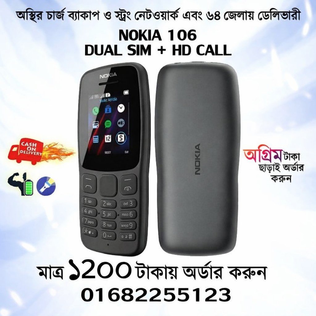 Nokia 106 কথা বলার জন্য এবং রাফ ইউজের জন্য খুব ভালো মানের একটি বাটন মোবাইল। এতে ডুয়াল সিম সাপোর্ট রয়েছে এবং ব্যাটারি ব্যাকআপও ভালো। সহজ ব্যবহার ও শক্তপোক্ত বডির কারণে এটি অনেকের পছন্দের একটি সেট।